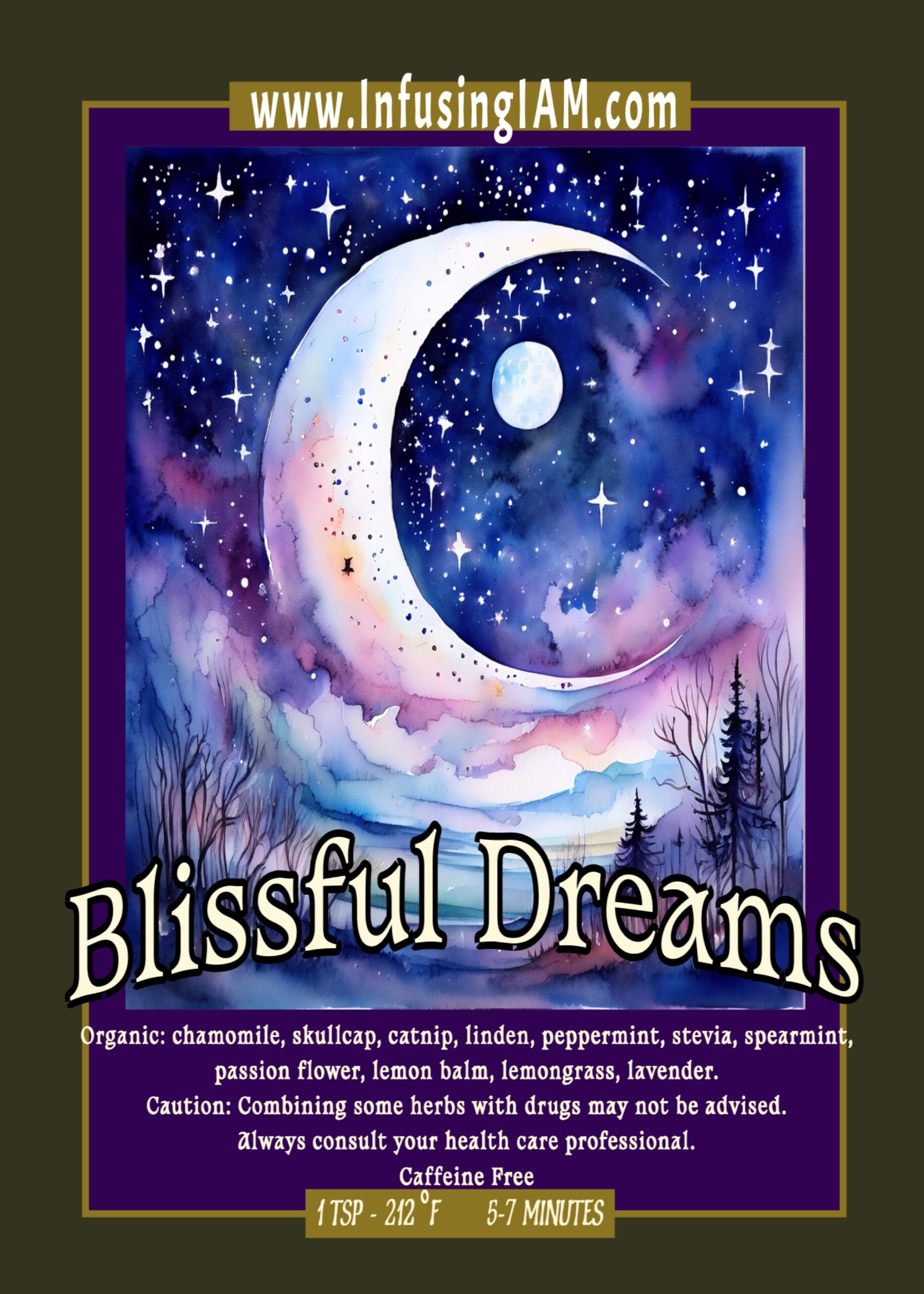 Ingredients: Organic chamomile flower, blue skullcap (Scutellaria lateriflora), catnip herb, linden flower, peppermint, stevia, spearmint, passion flower lemon balm, lemon grass, and lavender.
